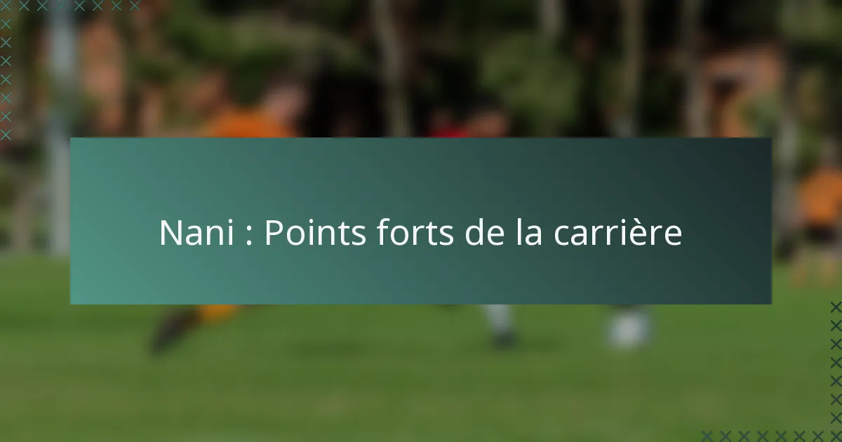 La progression de la carrière de Nani peut être décrite à travers des jalons et des réalisations clés :