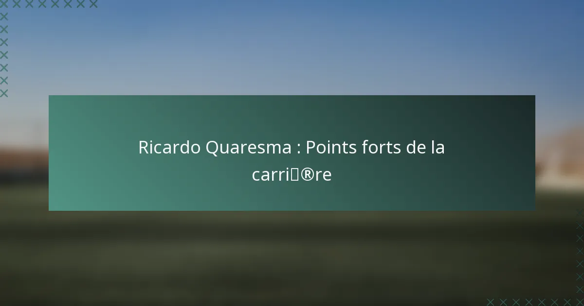 Quels matchs mémorables ont défini la carrière de Ricardo Quaresma ?