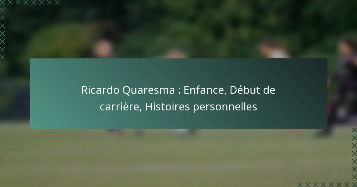 Le parcours de Ricardo Quaresma, d’une enfance culturellement riche au Portugal à celui de footballeur professionnel, est marqué par des influences significatives de sa famille et de sa communauté. Sa carrière précoce a été définie par des jalons clés qui ont affiné son style de jeu unique, tandis que des histoires personnelles reflètent sa résilience et sa passion pour le sport, mettant en lumière les complexités de son caractère et de sa carrière.