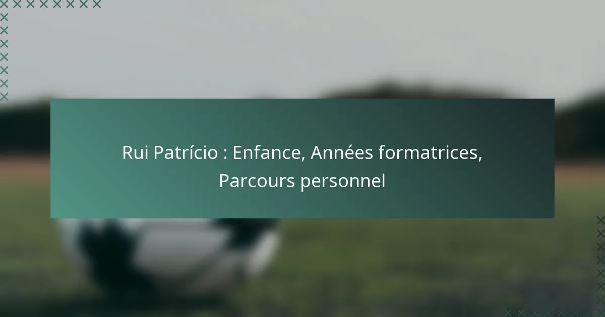 Le contexte de l’enfance de Rui Patrício est ancré dans sa vie précoce au Portugal, où il a développé une passion pour le football et a été influencé par sa famille et sa communauté. Ces années formatrices ont joué un rôle crucial dans la formation de son caractère et de sa carrière en tant que gardien de but professionnel.